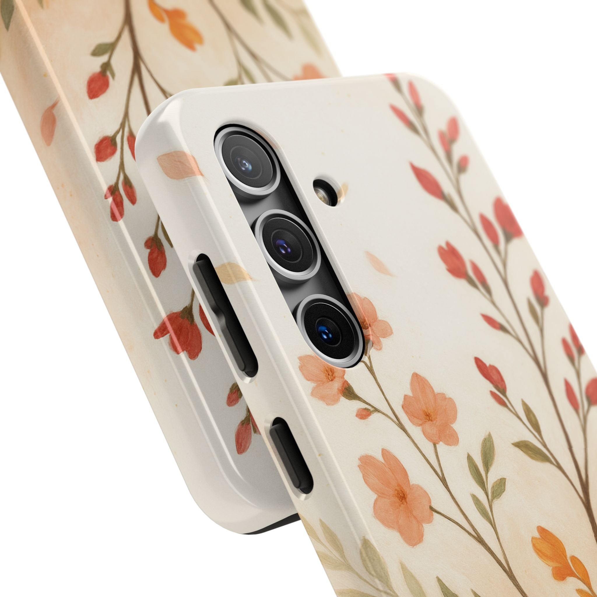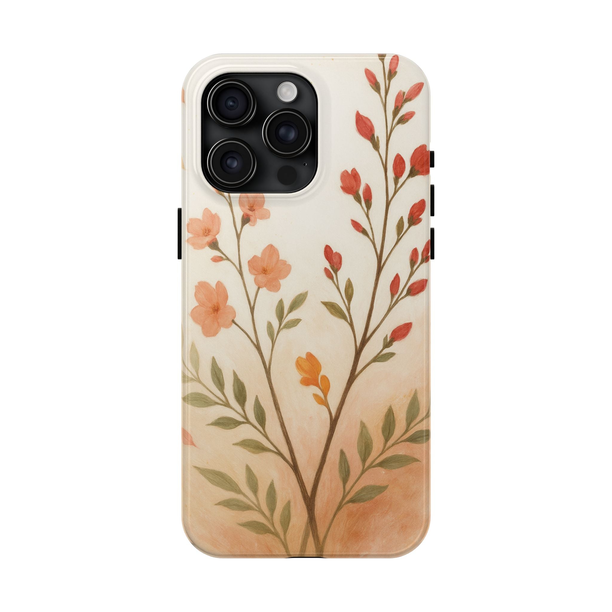 Floral Branch Tough Phone Case β€” Soft Peach Wildflower Protection